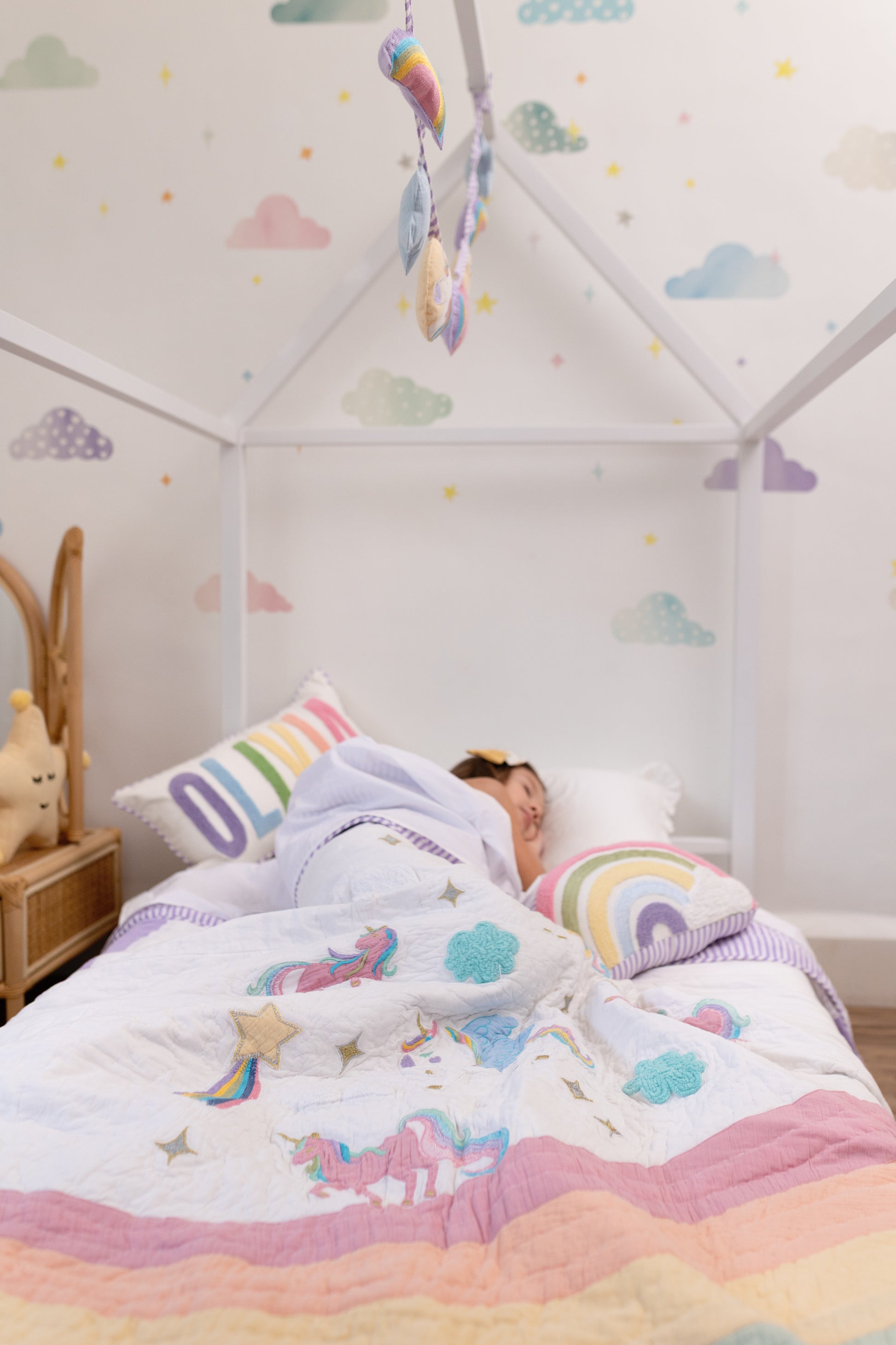 ★ Handcrafted Detail – Features delicate Kantha hand-stitching paired with playful applique motifs, giving each quilt its own story.